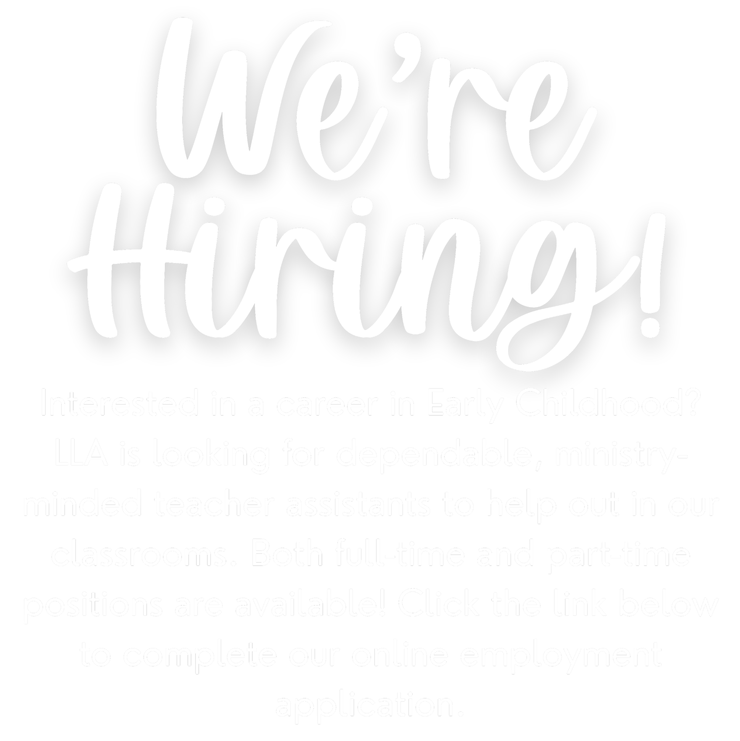 “LLA has been such a blessing to our family. Our son experienced a loving, Christian preschool experience guided by incredible, caring and Godly teachers. The safe, gentle environment aligned with the core values and beliefs we teach at home and we felt part of the LLA family. My son's teacher was wonderful at communicating with us and supporting both his strengths and needs. It was always evident she loved each and every child in her class. We adore LLA and recommend it 1,000% !”